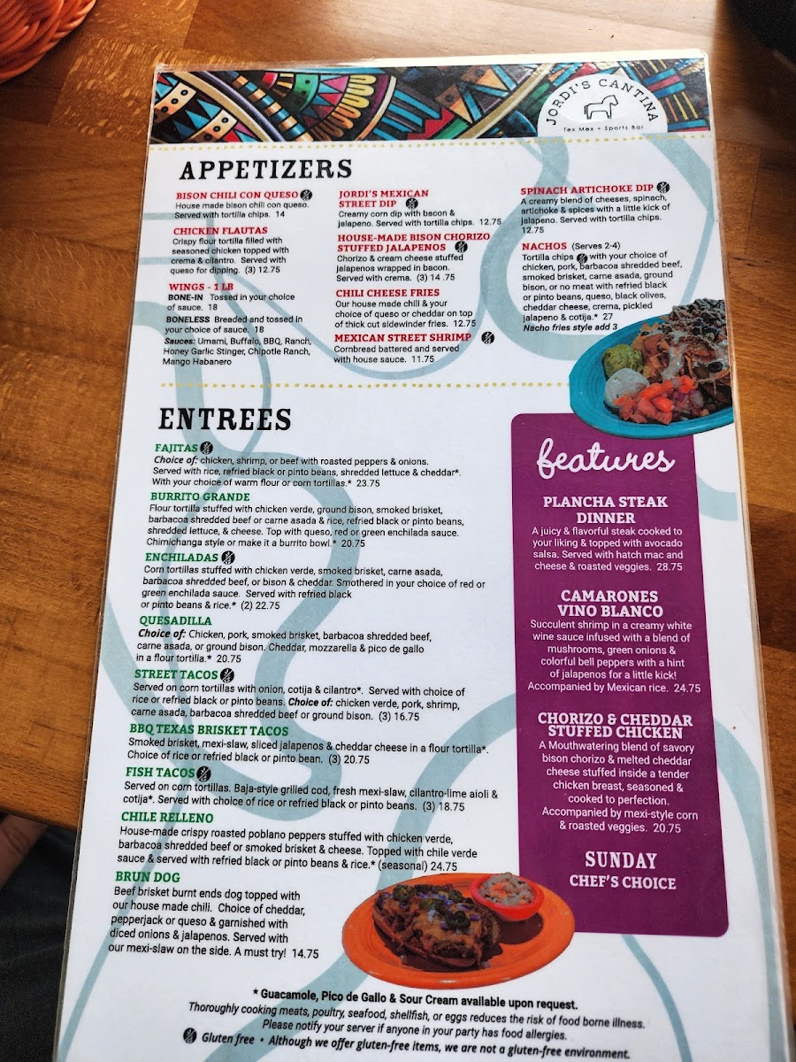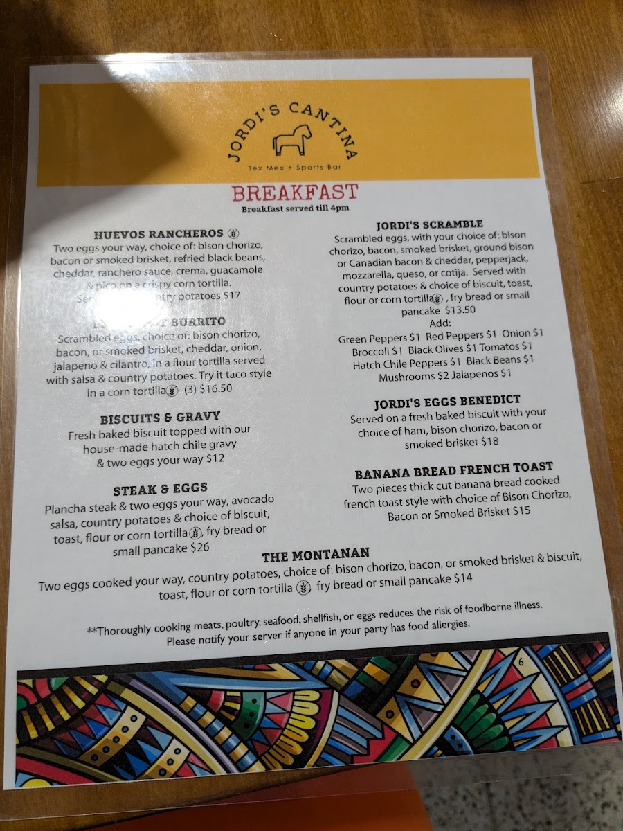 Welcome to Jordi's Cantina & Sports Bar, a delightful spot located at 627 E Park Ave, Anaconda, MT. This lively establishment brings an enticing menu that artfully combines traditional comfort food with unique, adventurous bites. The breakfast offerings are particularly noteworthy, featuring Fry Bread and Hatch Chili gravy poured over homemade biscuits — a must-try for the adventurous palate.